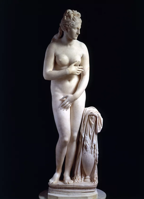 A escultura de mármore “Vênus Capitolina” — cujo autor permanece desconhecido — é uma representação elegante da deusa Vênus surgindo do banho. Medindo quase dois metros de altura, a Vênus se cobre de forma modesta, numa pose rara entre as esculturas de nus femininos. Embora a data de sua criação seja incerta, acredita-se que a escultura remonte ao século 4 a.C.