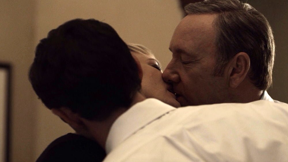 A cena de sexo a três, do 11º episódio da segunda temporada da série, surpreendeu os fãs . Nela, Frank Underwood e sua esposa, Claire, seduzem seu guarda-costas, Meechum. Claire está em casa tomando um drink com o segurança quando Underwood chega. A mulher, então, começa a beijar Meechum, em seguida o marido também o beija. O que vem a seguir fica para a imaginação dos espectadores. A cena faz referência a uma passagem da primeira temporada, em que fica subentendida uma relação homossexual de Frank na juventude.