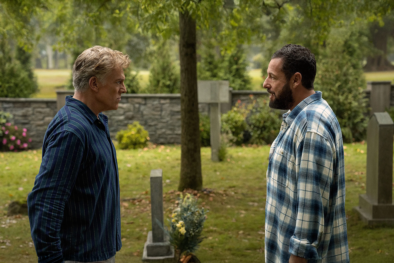 Sandler domina a mecânica do personagem. O corpo corre torto, a frase sai meio atravessada e, de repente, um insulto vira confissão involuntária de fragilidade. O ator utiliza a repetição como trampolim e intercala grosseria infantil com doçura de relance. O temperamento explosivo continua lá, porém a idade acrescenta um filtro que torna cada reação mais estratégica. Quando o protagonista estoura, revela algo sobre o medo de perder relevância; quando se contém, surge um tipo de escuta que antes não cabia no vocabulário dele. Dessa tensão nasce um humor que conserva exageros sem depender apenas deles.