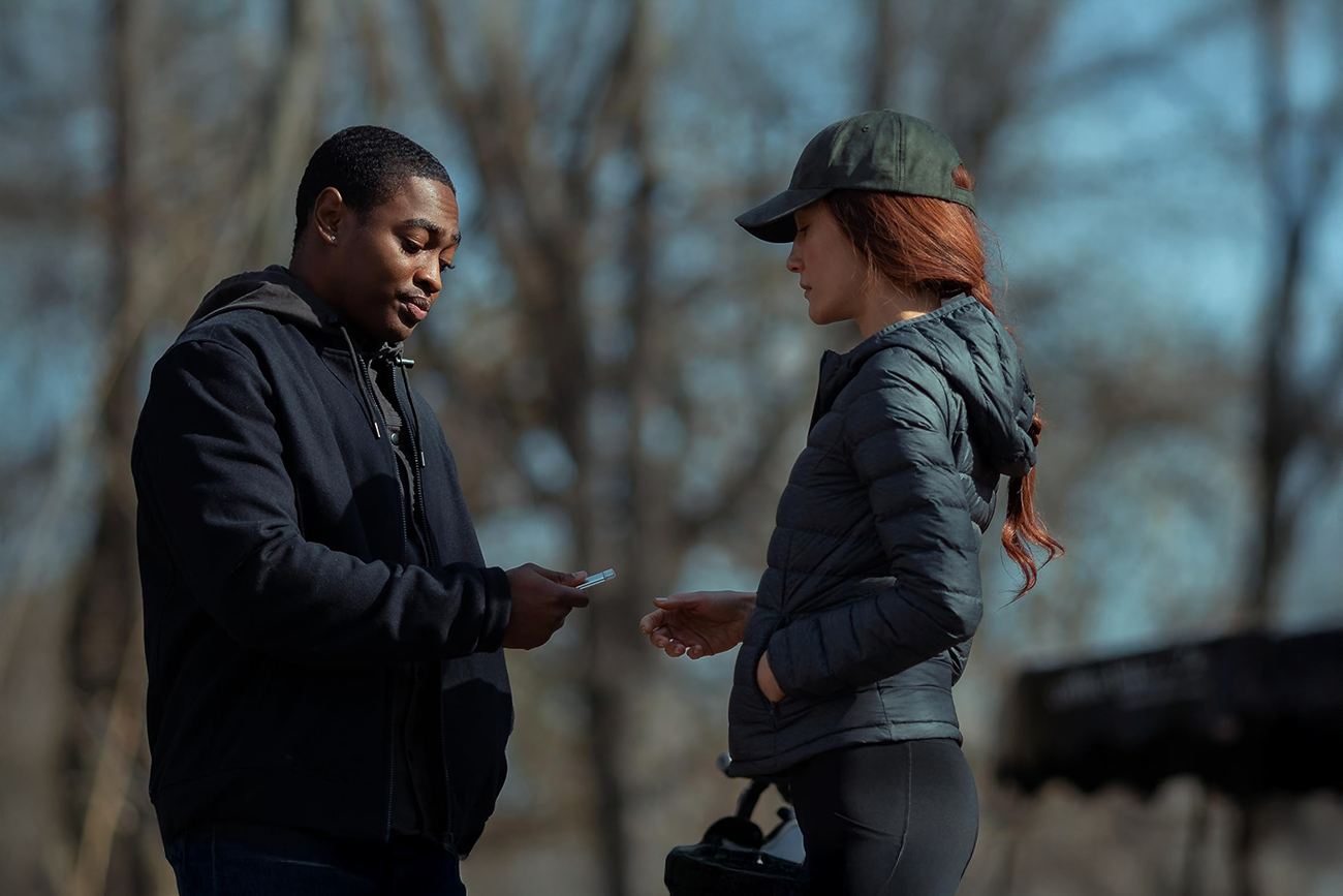 O roteiro também reserva espaço para um jogo de sedução estratégica entre a protagonista e o personagem de Keaton. Não há promessa de parceria duradoura, mas ocasiões em que interesses coincidem. Nesses momentos, o diálogo funciona como negociação de curto prazo. A escolha de palavras, a distância entre corpos e o tempo de cada olhar medem confiança possível. O filme confere a essas cenas uma cadência distinta: menos cortes, mais atenção às micro reações. O risco nunca sai do quadro, apenas muda de forma.