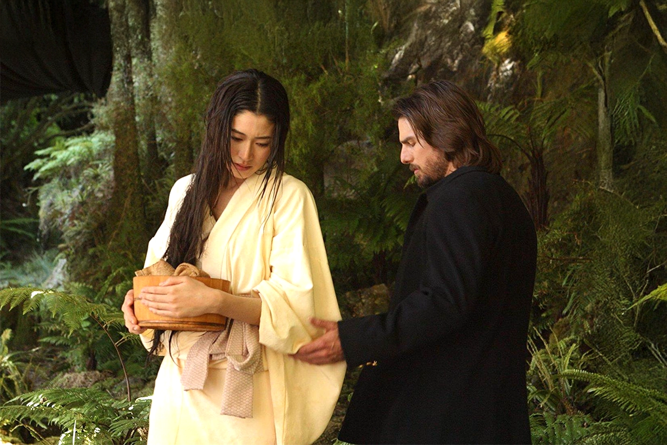 Os encontros entre Algren e Katsumoto não funcionam como trocas pedagógicas entre culturas, mas como choques ideológicos que revelam a instabilidade de ambos. Em vez de exotizar o universo samurai, o filme deixa evidente um país dividido entre a pressa industrial e a permanência de valores que ainda organizavam sua vida comunitária. A dinâmica é ainda mais intensa quando Taka (Koyuki) aparece em cena. A relação entre ela e Algren, marcada por hesitações e memórias feridas, evita sentimentalismos fáceis e demonstra como a intimidade também pode carregar tensões políticas. O gesto de acolhê-lo não é simples gentileza, mas expressão de uma ética que tenta sobreviver em meio a transformações violentas.