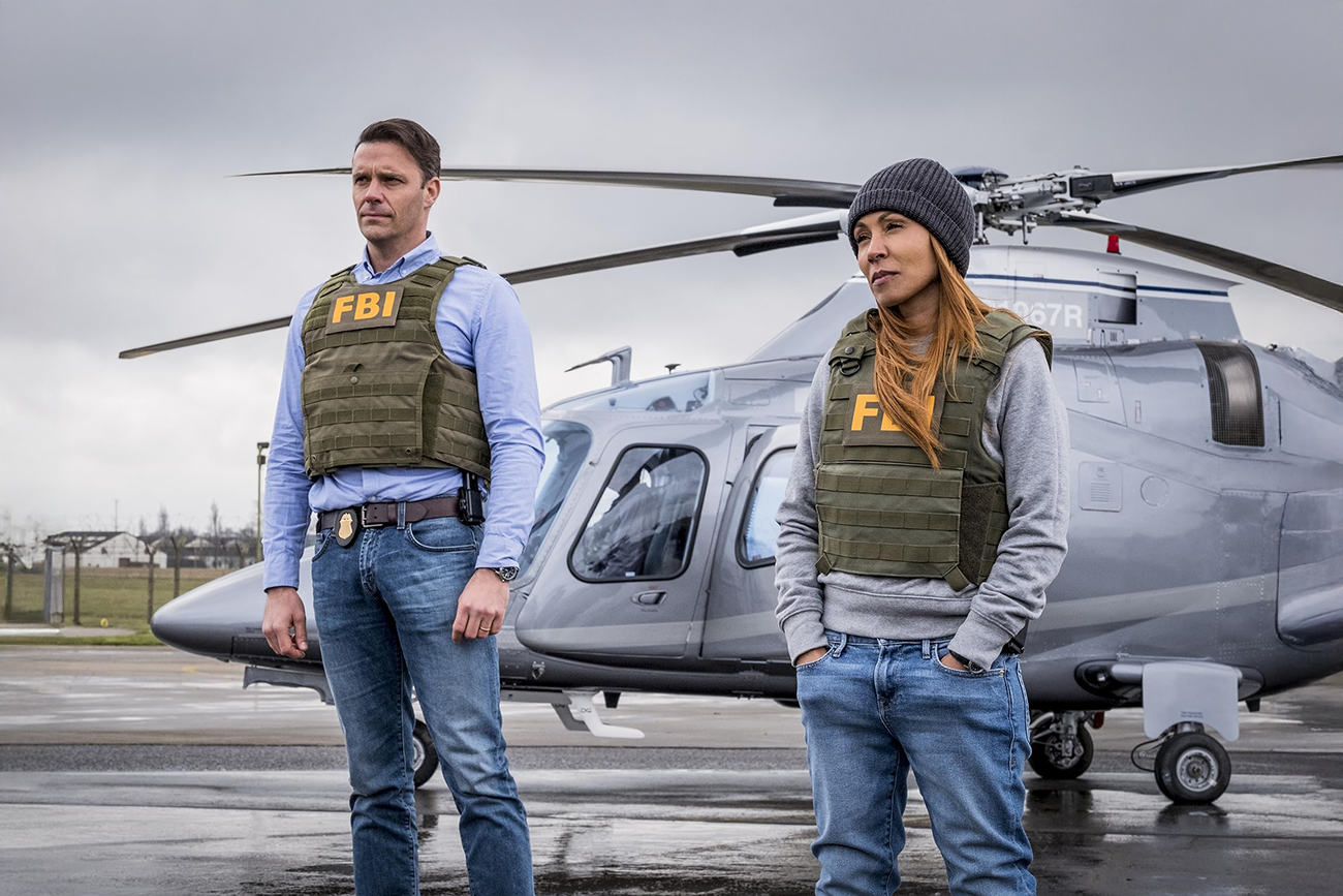 Gerard Butler encarna um agente que alterna bravura com cansaço permanente. O rosto marcado, a respiração pesada e a dificuldade para admitir limites físicos funcionam como sinais de um profissional que não quer abandonar a linha de frente, ainda que isso signifique colocar a própria família em risco. A relação com a esposa, vivida por Piper Perabo, expõe um lar que já se acostumou a conviver com ausências, chamadas de emergência e a possibilidade constante de que um serviço não termine bem. A filha pequena, por sua vez, representa a rotina que o protagonista tenta preservar enquanto o país inteiro o enxerga como ameaça.