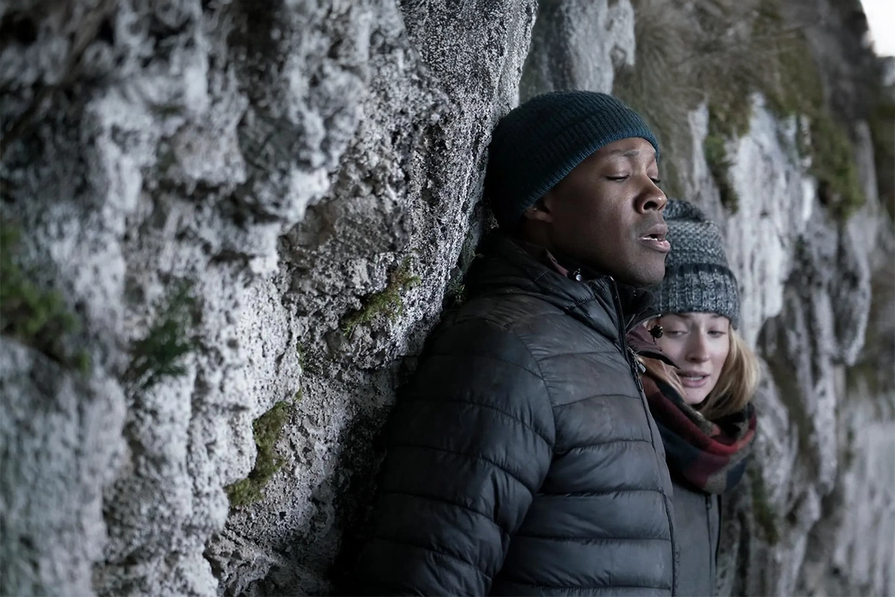 Quando o acidente finalmente ocorre, a lógica interna da narrativa enfraquece. Jane e Paul sobrevivem de maneira pouco verossímil, e a dinâmica entre os dois se estabelece com uma inconsistência difícil de ignorar. Paul oscila entre uma racionalidade supostamente prática e reações que o próprio roteiro não sustenta, tornando-o mais irritadiço que convincente. Essa irregularidade, somada à ausência de experiência de ambos em ambientes hostis, cria uma sucessão de decisões que desafiam qualquer mínimo de credibilidade. O filme aposta em escaladas improváveis, deslizes em penhascos, descidas sem equipamentos e uma espécie de coreografia improvisada de sobrevivência que ignora princípios básicos de orientação em áreas montanhosas. A condução dessas sequências tampouco favorece a tensão; a câmera parece mais interessada em capturar a grandiosidade das locações do que em construir uma sensação real de perigo.