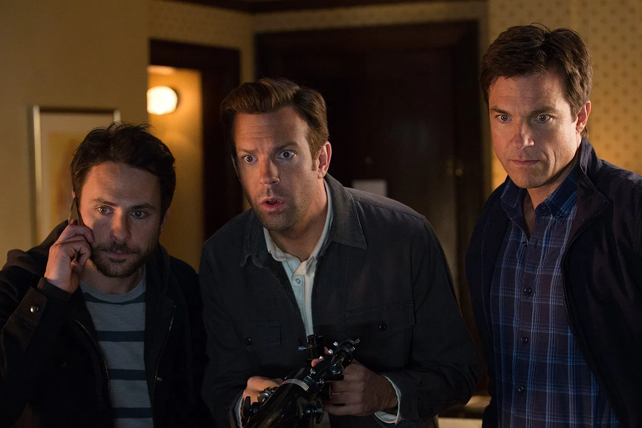 Seth Gordon filma a ação com clareza quase televisiva, apoiado em diálogos rápidos e uma montagem que privilegia reação sobre gesto. O foco não está na violência, mas no descompasso entre fala e ação. Os personagens falam muito, planejam demais, erram o alvo. A câmera raramente se move com violência; prefere observar o constrangimento, o olhar lateral, a pausa longa antes de uma decisão equivocada. Isso mantém o tom de comédia de costumes, mesmo quando a trama flerta com o crime.