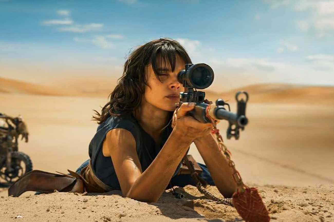 Num oásis em meio a um imenso deserto, a menina Furiosa colhe pêssegos enquanto um bando de facínoras em motos com engrenagens aparentes estripa um cavalo. Furiosa é capturada por eles, sua mãe, Mary Jabassa, vai em seu socorro, e assim começa mais uma das tão características excursões da franquia por paisagens exuberantes em sua aridez, feitas de dunas sem fim e tempestades de areia. O diretor e seu corroteirista Nick Lathouris usam todos os elementos que aquele cenário lhes oferece, como se compusessem um mosaico gigantesco e vivo em que os personagens entram como as últimas peças. Embora não apareça tanto, Charlee Fraser é imprescindível para que se compreenda aonde Miller quer chegar, isto é, ao antiprofeta Dementus, e nesse ponto a narrativa alinhava o passado de Furiosa, encarnada por Alyla Browne, ao seu futuro, incerto como o de todo o gênero humano.