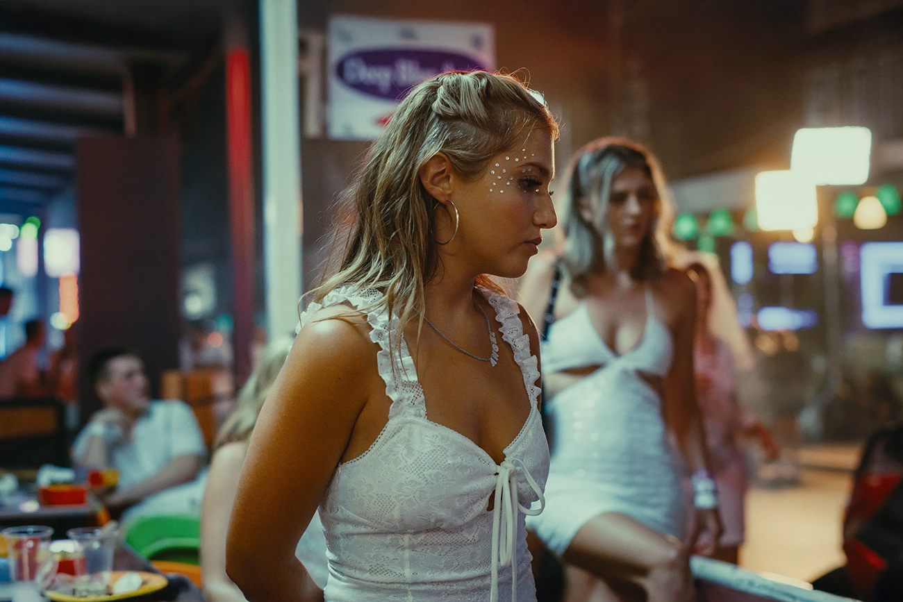 Tara viaja para Creta com as melhores amigas, Em e Skye, esperando surpresas. Essa é a primeira das muitas “experiências adultas” que pretende ter nesse êxodo idílico, malgrado ainda seja pouco mais que uma garota e não tenha sequer acabado a escola. As outras são tomar uma épica carraspana e, claro, ir para a cama com o maior número de parceiros que conseguir, e uma coisa leva à outra. Em seu roteiro, Walker dedica bastante tempo a decompor as personalidades de cada uma, ressaltando nuanças que ficam mais evidentes minuto a minuto. Tara é a típica boa moça, mas sem preconceitos, compreensiva, disposta a ter contato com gente de outros universos. Em e Skye tomam a frente da tarefa, elas mesmas interessadas em aproveitar todas as oportunidades e fazer todas as loucuras que puderem. Elas vão a um inferninho onde se embriagam, voltam para o hotel depois de umas paradas para urinar e no dia seguinte enturmam-se com os hóspedes do quarto ao lado. E vão fundo.
