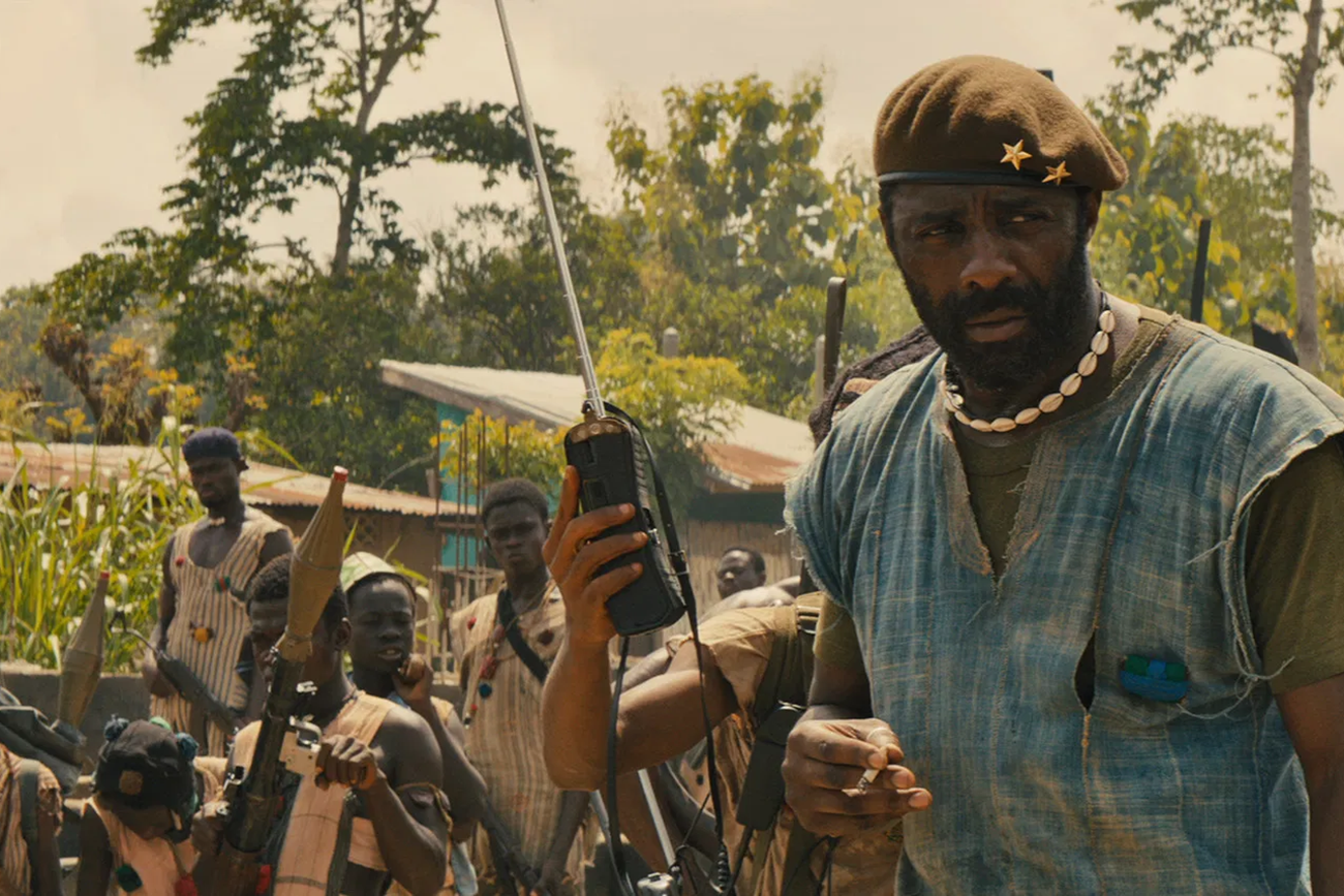O Comandante ganha vida pela interpretação certeira de Idris Elba, que deixa aflorar a natureza diabólica do chefe do bando sem, contudo, jamais deixar que esse sujeito, entre misterioso e cínico, extravase qualquer sentimento mais oculto. O que se depreende de sua figura é que se trata de um guerrilheiro profissional, de um mercenário, que soubera aproveitar uma boa ocasião para subjugar indivíduos atormentados pela guerra. A experiência e o talento de Elba permitem à audiência encarar o Comandante à luz da crítica sociológica, como a encarnação perfeita da debacle da civilização, um homem que molda sua identidade a depender do meio em que se encontra. Esse tipo facinoroso se crê não o monstro que corrompe crianças já há algum tempo desiludidas, que abdicaram da felicidade e conscientes de que no mundo vale mesmo é a lei do mais forte, mas, ao contrário, seu salvador, seu redentor, o único que pode tirá-los da ignomínia da fome e da indignidade de passar resto da vida se esgueirando por entre a mata, tentando escapar da morte, caçados feito bichos. Para tanto, bota-lhes nas mãos um fuzil, que eles aprendem a manejar na marra, conta um pouco de sua vida, ouve seus comandados e desse modo estabelece com eles uma relação paternal, que a maioria nunca teve com ninguém. Assim se formam as tiranias.