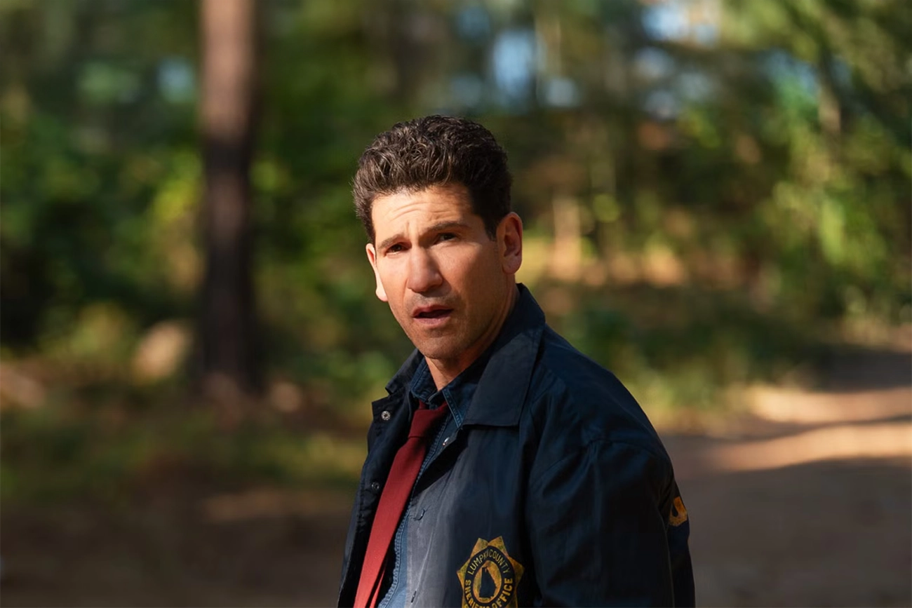 Jon Bernthal compõe um detetive que raramente se explica. Ele não é agressivo nem abertamente hostil, mas impõe limites com naturalidade, como alguém habituado a mandar naquele território. Seu personagem administra a investigação e a própria autoridade ao mesmo tempo, sabendo quando ceder e quando endurecer. A relação com Anna não vira um duelo verbal, e sim uma sequência de ajustes: ele autoriza um passo, interdita outro, observa o efeito. O conflito cresce justamente dessa economia de gestos.