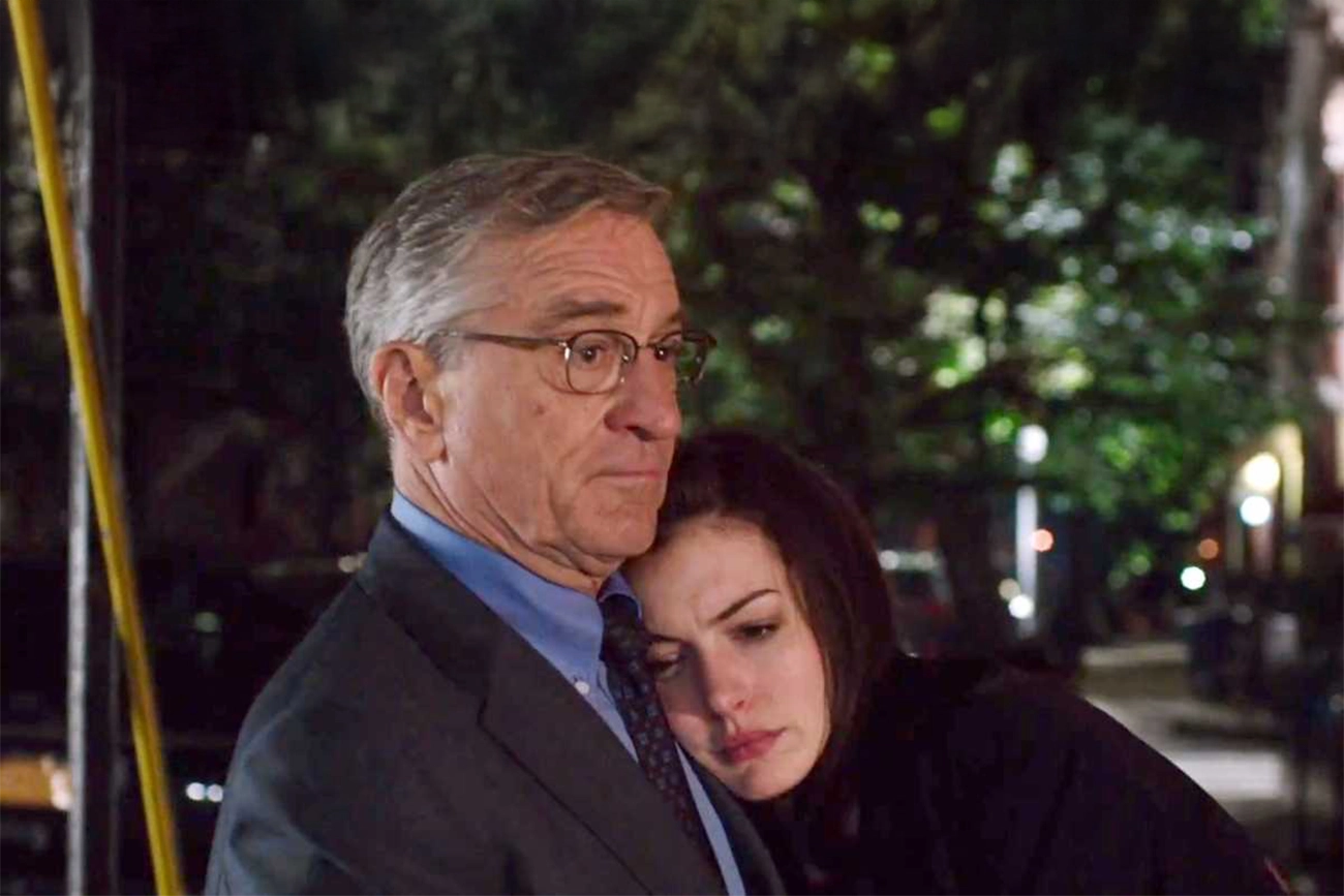 Ben não chega para ensinar ninguém nem para provar superioridade. Ele observa, ajuda onde pode e entende rapidamente que aquele ambiente funciona à base de pressa, pressão e decisões tomadas no limite. Robert De Niro constrói o personagem com economia, apostando em gestos, postura e escuta, o que dá credibilidade à presença dele naquele espaço jovem. A experiência de Ben vira um recurso silencioso, nunca uma bandeira, e isso evita qualquer tom de lição de moral.