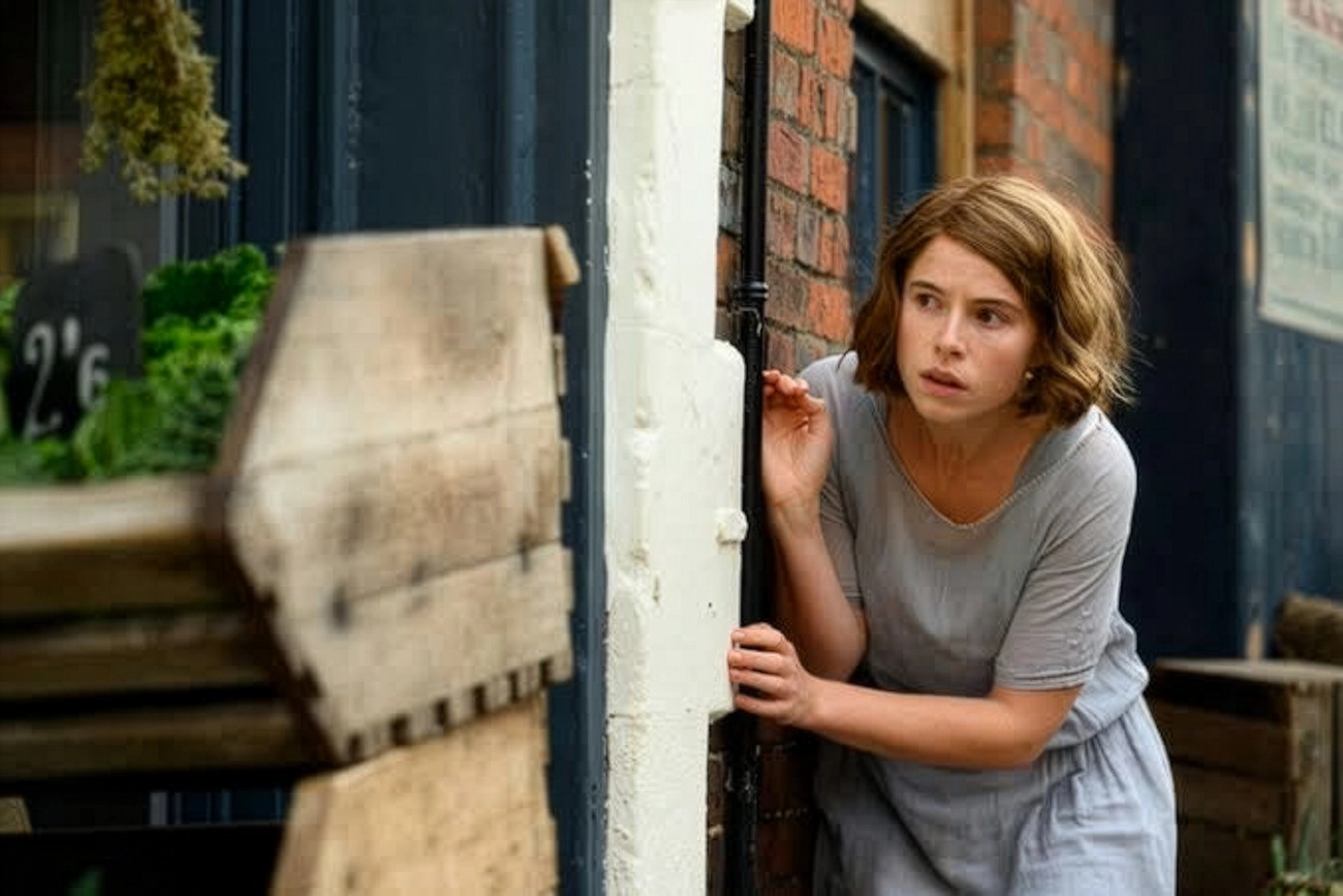 “Pequenas Cartas Obscenas”, dirigido por Thea Sharrock, parte de um problema aparentemente banal para expor como julgamentos rápidos podem virar tragédia pessoal. Em Littlehampton, uma cidade pequena onde todos sabem da vida alheia, cartas anônimas repletas de palavrões começam a circular. A polícia precisa encontrar um culpado, e Rose Gooding (Jessie Buckley) surge como alvo imediato. Ela fala alto, reage sem filtro e já ocupa uma posição vulnerável. Isso basta para que a suspeita ganhe forma oficial, colocando em risco algo bem mais sério do que sua reputação.