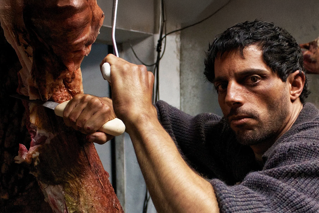 Trabalhadores como Hermógenes Saldívar, uma composição muito fundada na caracterização física de Joaquín Furriel, parecem destinados a ter de tentar desvencilhar-se do arbítrio patronal incansavelmente. Antes trabalhador rural em Santiago del Estero, no norte da Argentina, o personagem de Furriel parte rumo a Buenos Aires à procura de melhores condições de vida para si e para sua esposa, Gladys, de Mónica Lairana, também uma interpretação que prima pela transformação corporal. Meio corcunda, com a perna direita inutilizada graças à fúria de um cavalo na infância, analfabeto e completamente desacreditado, Hermógenes acaba aceitando a proposta de trabalho de Latuada, de Luis Ziembrowski, que lhe oferece emprego num de seus açougues, depois que demite o “peruano imundo” que administrava a loja por acreditar que este o roubava. Perigosamente ingênuo, Hermógenes — imediatamente rebatizado como Santiago, em referência a sua terra natal, uma forma de desidentificá-lo e, por que não?, desumanizá-lo —, acredita que tirou a sorte grande, ao conseguir ocupação tão fácil e ainda poder se livrar do aluguel do quarto de pensão em que mora com Gladys e poder se mudar para os fundos do açougue, um espaço claustrofóbico, úmido e imundo, mas, que, segundo Latuada, ficaria perfeito depois de uma faxina. Santiago e a mulher, que vai trabalhar na casa de Latuada, passam a dividir o cubículo, e à medida os dias avançam e a história toma corpo, o protagonista se dá conta de que o patrão não é assim tão bom quanto ele imaginava. Periodicamente, o açougue recebe cargas de carne adulterada, rejeitadas pela Vigilância Sanitária e revendidas como ainda próprias para consumo mediante expedientes que Latuada e Armando, o funcionário mais antigo vivido por German de Silva, lhe detalham passo a passo.