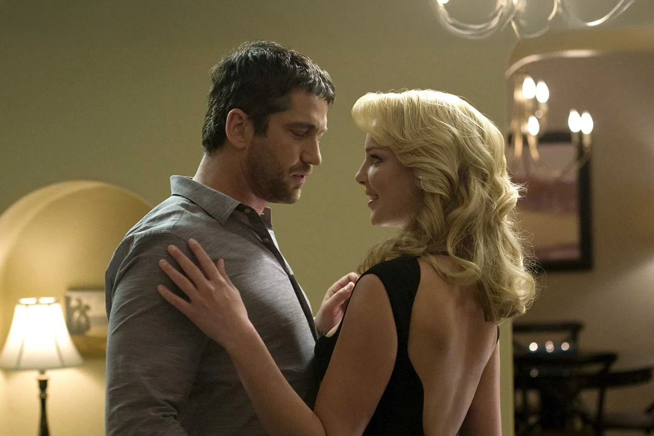 Gerard Butler interpreta Mike Chadway como presença que se impõe pelo volume e pela provocação. Ele se vende como “especialista” em dizer o que atrai homens e usa frases de efeito para dominar o quadro, mesmo quando a resposta já está na cara de quem ouve. O filme repete o desenho: Mike dá uma regra, Abby contesta, ele corta a contestação e transforma a discordância em performance. Quando a câmera permanece no constrangimento de Abby por segundos a mais, a piada depende do tempo de espera, não do corte. A sessão avança e, quando esse intervalo reaparece, a reação tende a vir com menos surpresa.