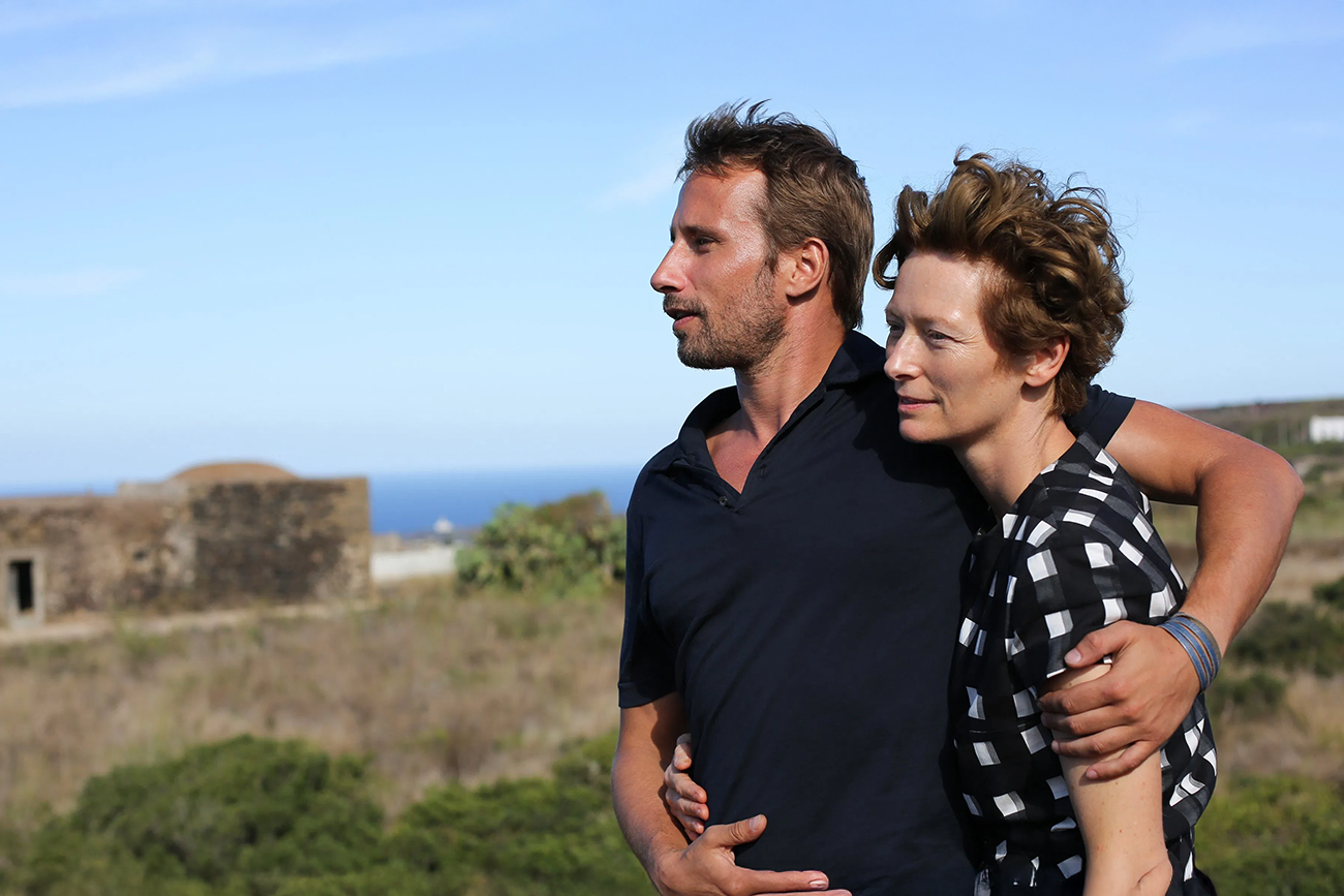 Com Tilda Swinton, a personagem central entra em silêncio, cruza ambientes sem falar e interrompe tentativas de conversa. A economia do corpo dela desloca o trabalho para o entorno: outros personagens ocupam o mesmo espaço com fala, música e movimento. Para o espectador, isso vira observação contínua por vários minutos. O entendimento chega em pequenas correções de postura e de distância, e pede energia para acompanhar sem um atalho verbal.