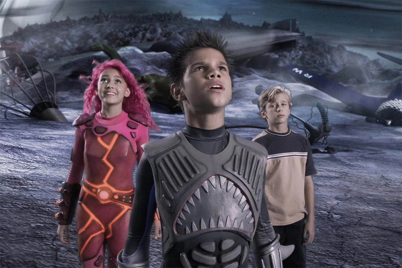 Esse equilíbrio se rompe quando Sharkboy (Taylor Lautner) aparece e prova que aquelas histórias não estão confinadas ao caderno. O garoto meio humano, meio tubarão, não surge como fantasia fofa, mas como um problema real pedindo ajuda. A partir daí, Max precisa decidir se assume responsabilidade pelo que criou ou se continua se escondendo atrás das ideias. A aventura começa menos como sonho realizado e mais como convocação: alguém precisa responder pelo caos que se aproxima.