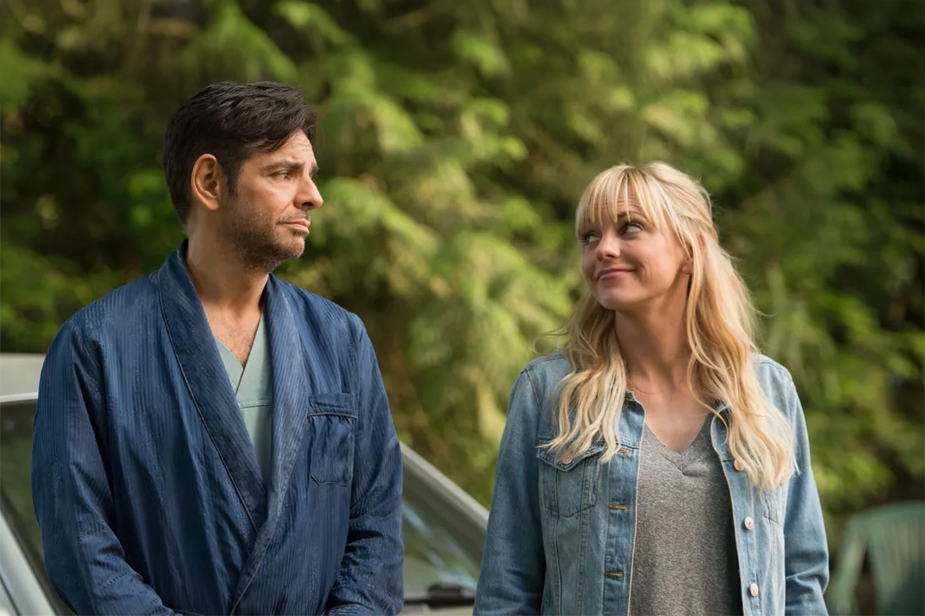 Eva Longoria aparece como Teresa, ligada ao antigo mundo de Leonardo, e sua presença funciona como lembrete constante de que aquela farsa tem limites claros. Cada vez que esse passado ameaça reaparecer, a história ganha tensão prática: esconder, desviar, improvisar. Nada explode de forma exagerada, mas o desconforto cresce e muda o comportamento dos personagens.