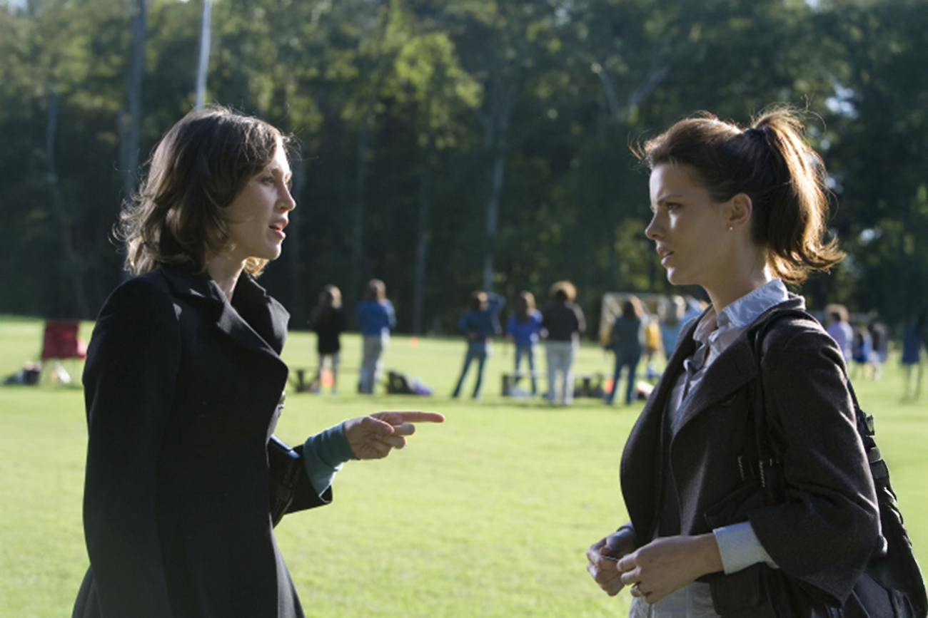 O governo reage exigindo que Rachel revele a fonte. O pedido não fica no terreno da pressão de bastidor, e ela acaba detida por desobediência quando se recusa a entregar o nome. “Faces da Verdade” põe essa recusa no centro logo de saída, e Kate Beckinsale sustenta a posição sem sinalizar recuo.