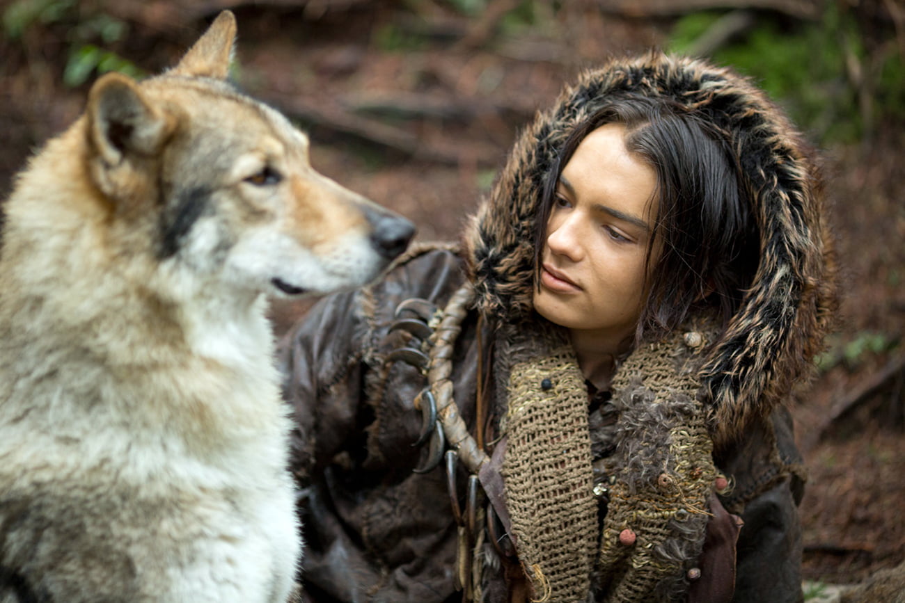 A própria natureza humana era bastante diferente do que se tem hoje. Nossos cérebros eram visivelmente menores, dependíamos muito mais de nossos músculos para nos mantermos no jogo da vida e o indivíduo que demonstrasse a mínima hesitação quanto a abater seu predador se lhe surgisse a chance era um candidato ideal à morte. Keda, interpretado por Kodi Smit-McPhee, é um espécime com essas características, embora à primeira vista pareça ameaçador na caçada aos bisões empreendida pela tribo de que faz parte. O filho de Tau, de Jóhannes Haukur Jóhannesson, o alfa, o líder de seu povo, encerra grandes expectativas, mas se ainda hoje, num século 21 dito moderno, a sensibilidade não é propriamente uma qualidade nos exemplares masculinos do gênero humano — especialmente em determinadas circunstâncias —, sofrer de algum prurido moral ou mesmo sentir pena por ter de matar um outro ser vivo há vinte milênios era uma questão que não se podia deixar para depois. Keda não é capaz de dar o golpe de misericórdia no animal que o pai já havia ferido, uma demonstração de fraqueza que pode lhe custar caro, pois “a vida é para os fortes”, segundo lhe diz Tau. Naquele contexto, ninguém seria tolo de questionar a autoridade de suas palavras — e o filme exige do espectador a prática constante da licença poética —, tanto que o pior acontece. A tibieza circunstancial de Keda no enfrentamento a uma presa o lança num abismo; Smit-McPhee se sai muito bem ao valorizar a dubiedade de seu personagem, que inconscientemente encontra uma maneira de se afastar daquele núcleo social com que não se identifica e permanece, entre morto e vivo, preso numa alça de rocha, exatamente na metade do caminho que separa o precipício do chão. Esse coma se presta como seu renascimento, iniciado com o ataque de uma ave de rapina, que mesmo moribundo consegue enxotar.