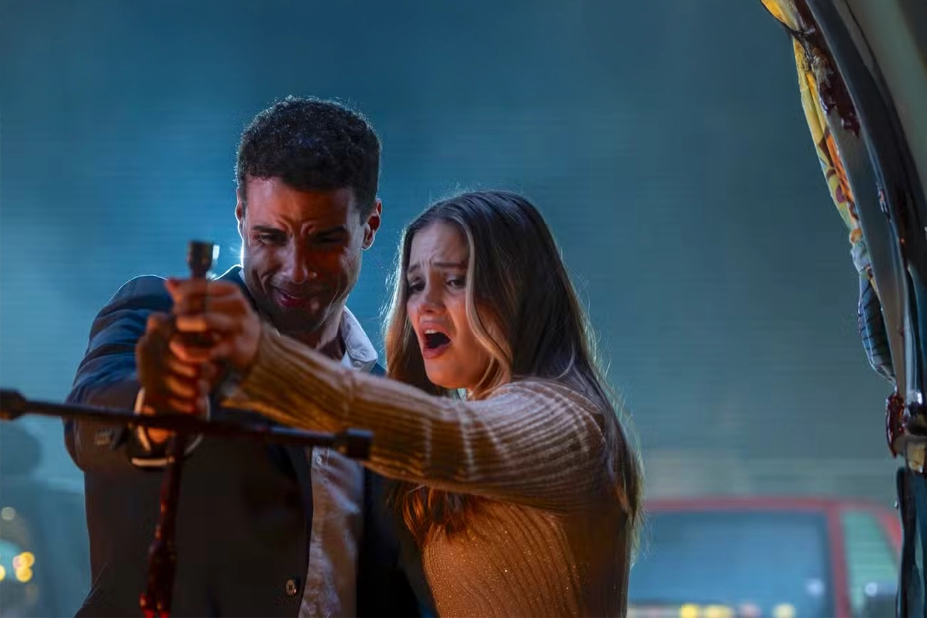 O roteiro brinca com os códigos da comédia romântica enquanto instala situações típicas de terror. Ally e Jay discutem relacionamento ao mesmo tempo em que precisam decidir para onde correr, em quem confiar e como sobreviver à próxima investida. A dinâmica entre Olivia Holt e Mason Gooding funciona porque os dois entendem o tom: há espaço para piadas rápidas, olhares constrangidos e momentos de tensão real. Quando a polícia entra em cena, com a detetive Jeanine Shaw e seu parceiro tentando organizar o caos, a suspeita passa a circular por todos os lados, e ninguém parece totalmente seguro.