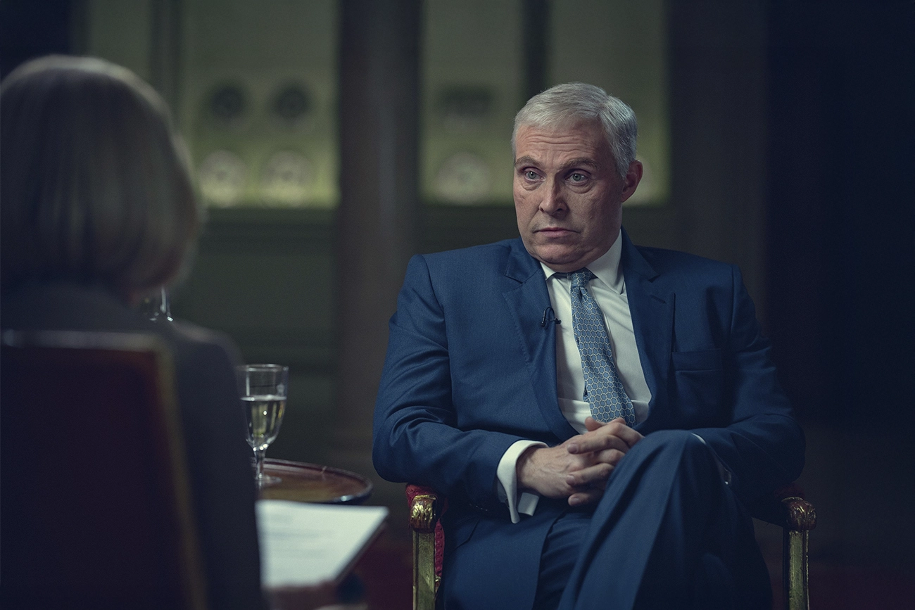 Rufus Sewell constrói um Andrew que oscila entre segurança e desconforto. Ele se apoia na formalidade, tenta manter a postura, mas a situação o empurra para um território menos confortável: o da prestação de contas pública. Gillian Anderson, como Emily Maitlis, evita qualquer exagero. Sua interpretação é precisa, quase clínica, e justamente por isso incisiva. Ela não precisa elevar o tom para impor presença. Basta insistir na pergunta certa, no momento certo.