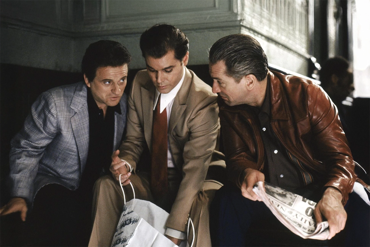 Ray Liotta entrega uma atuação marcante ao interpretar Henry Hill, equilibrando ambição, ingenuidade e nervosismo em diferentes momentos da história. Robert De Niro, como Jimmy Conway, transmite autoridade com poucos gestos, enquanto Joe Pesci cria um dos personagens mais memoráveis do cinema criminal com seu Tommy explosivo e imprevisível. Lorraine Bracco, por sua vez, traz intensidade ao papel de Karen, mostrando como o encanto e o perigo daquele estilo de vida caminham lado a lado.
