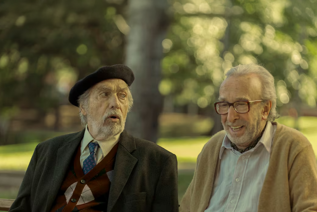 León escapa de virar caricatura porque Campanella preserva seu ridículo, sua graça e sua teimosia. Ele inventa, provoca, se exibe, fala de comunismo, altera a verdade e às vezes parece tão cansativo quanto encantador. Tudo cabe nele. Essa oscilação dá corpo ao vínculo com Antonio, já que a amizade não se sustenta em afinidade fácil, mas no choque entre duas maneiras de envelhecer em Buenos Aires, uma mais contida e resignada, outra espalhafatosa e agressiva. Quando Clarita, filha de León, entra em cena, “Parque Lezama” lembra que o banco da praça não apaga o resto do mundo e que cada encontro carrega também família, desgaste, constrangimento e algum tipo de dívida emocional.