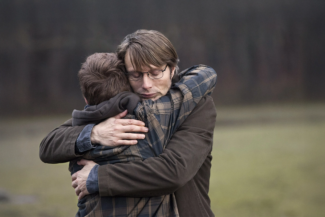A reação da cidade transforma completamente o cotidiano do personagem. Pessoas que antes o cumprimentavam passam a evitá-lo. Conversas ficam truncadas. Olhares mudam. E quanto mais Lucas tenta explicar que não entende de onde veio a acusação, mais parece falar para um muro de suspeitas já construído.