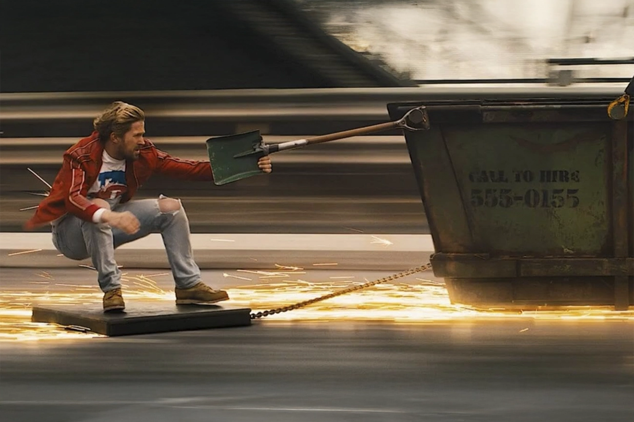 O interessante é que “O Dublê” não tenta esconder sua paixão pelos bastidores do cinema. David Leitch, que começou a carreira justamente como dublê e coordenador de ação, parece se divertir mostrando o trabalho por trás das grandes sequências. Rampas escondidas, cabos invisíveis, carros preparados para capotar. O filme olha para esse universo com carinho e um certo orgulho profissional.