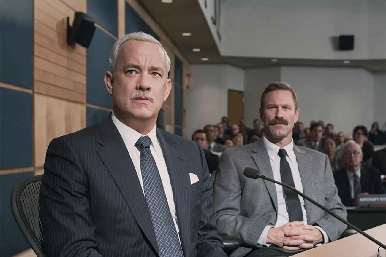 Tom Hanks interpreta esse conflito com uma contenção impressionante. Seu Sully não se defende de forma explosiva, nem tenta se impor pela emoção. Ele escuta, observa, responde quando necessário. Há uma inquietação silenciosa ali, uma espécie de dúvida que se instala mesmo diante do sucesso da operação. Como se ele próprio ainda estivesse revisitando aquele momento, tentando entender se havia, de fato, outra saída.