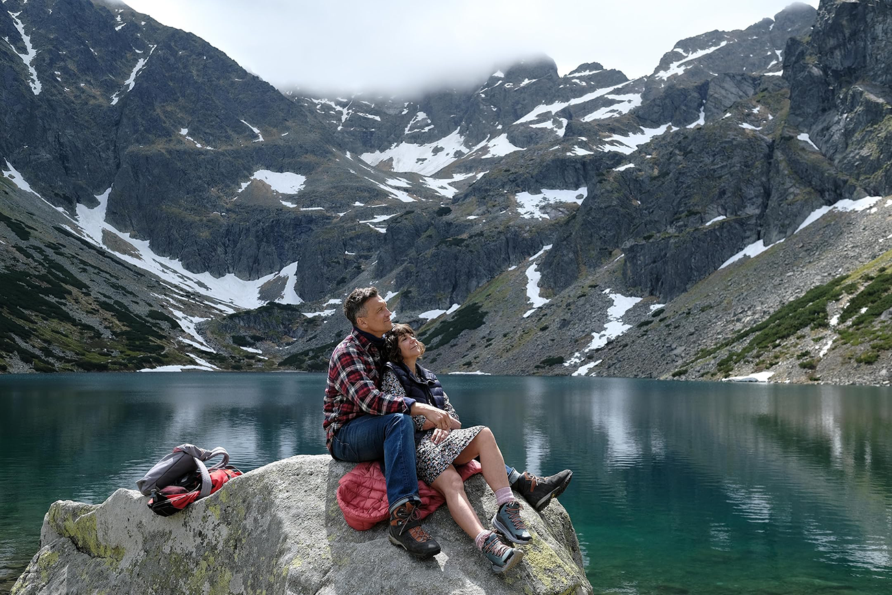 Também ajuda o fato de o filme confiar bastante nos ambientes. A confeitaria “Perełka”, a casa no litoral pedindo reforma, a rotina familiar de Majka, de um lado; do outro, a paisagem montanhosa, a casa de Agata, o ar mais rarefeito de uma vida menos atravessada por parentes e tarefas. O contraste é óbvio, mas funciona. Não como metáfora sofisticada, e sim como ferramenta de gênero. O litoral e os Tatras dão ao filme o que ele precisa para fazer a engrenagem rodar: diferença visível, novas possibilidades de encontro, pequenas fantasias de recomeço. Quando surgem Paweł e Daniel, o interesse não está exatamente na surpresa romântica, mas no que esses encontros provocam de deslocamento prático na vida das duas.