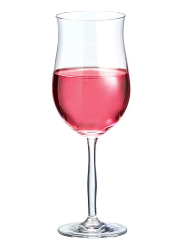 Os vinhos rosés possuem a adstringência dos tintos e os aromas dos brancos. Por esse motivo, as taças para apreciá-los devem ser menores que as dos brancos, mas com o fundo maior, para acentuar a acidez do vinho, equilibrando sua doçura. Como poucas marcas possuem recipientes específicos para os vinhos rosados, pode-se usar também as taças para vinhos brancos.